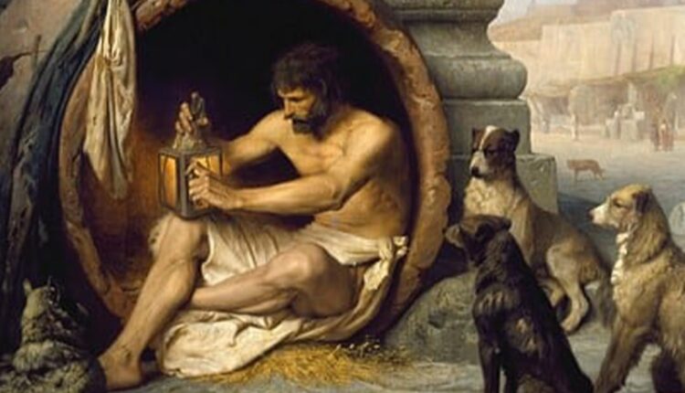 عندما نلقي نظرة على لوحة الفنان رافائيل “مدرسة أثينا”، والتي تصور الفلاسفة الاغريق وهم يتحاورون فيما بينهم، نرى في قلب اللوحة شخصان: ارسطو وافلاطون. ولكن موضوع مقالنا اليوم عن ذاك المستلقي على السلالم، معطٍ ظهره قلب اللوحة. أي كأن رافائيل يحاول تصوير انتقاد هذا الرجل لكل تمثله اللوحة. انتقاده لأفلاطون المجتمع الاغريقي والحضارة ككل. ديوجانس الكلبي، ذاك الذي اخذ الفقر فضيلةً والطبيعة الى اقصى ما يمكن حتى أصبح شخصية مثيرة للجدل. فعاش في حواري أثينا متسولا. يناقش – كسقراط – كل من هب ودب. فكان يأكل البقايا، يبات في المعبد او تحت أي سقف يراه او كما يصوره العديد من الفنانين في وعاء كبير او في حوض. كان أسلوبه الفلسفي معتمد على قيمة الصدمة. فكان يتبول على المارة ويستمني امام العامة. فسنحاول في هذا المقال ان نعطي بعض المعنى لجنون هذا الفيلسوف ونلقى نظرة على مدرسته الفلسفية وتأثيرها.